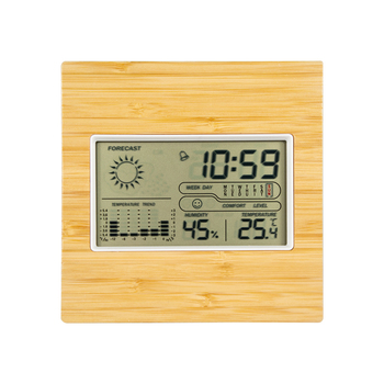 Evertop ET5091 Pantalla grande Mesa de escritorio Tiempo Temperatura Fecha con marco de bambú real Reloj despertador LCD